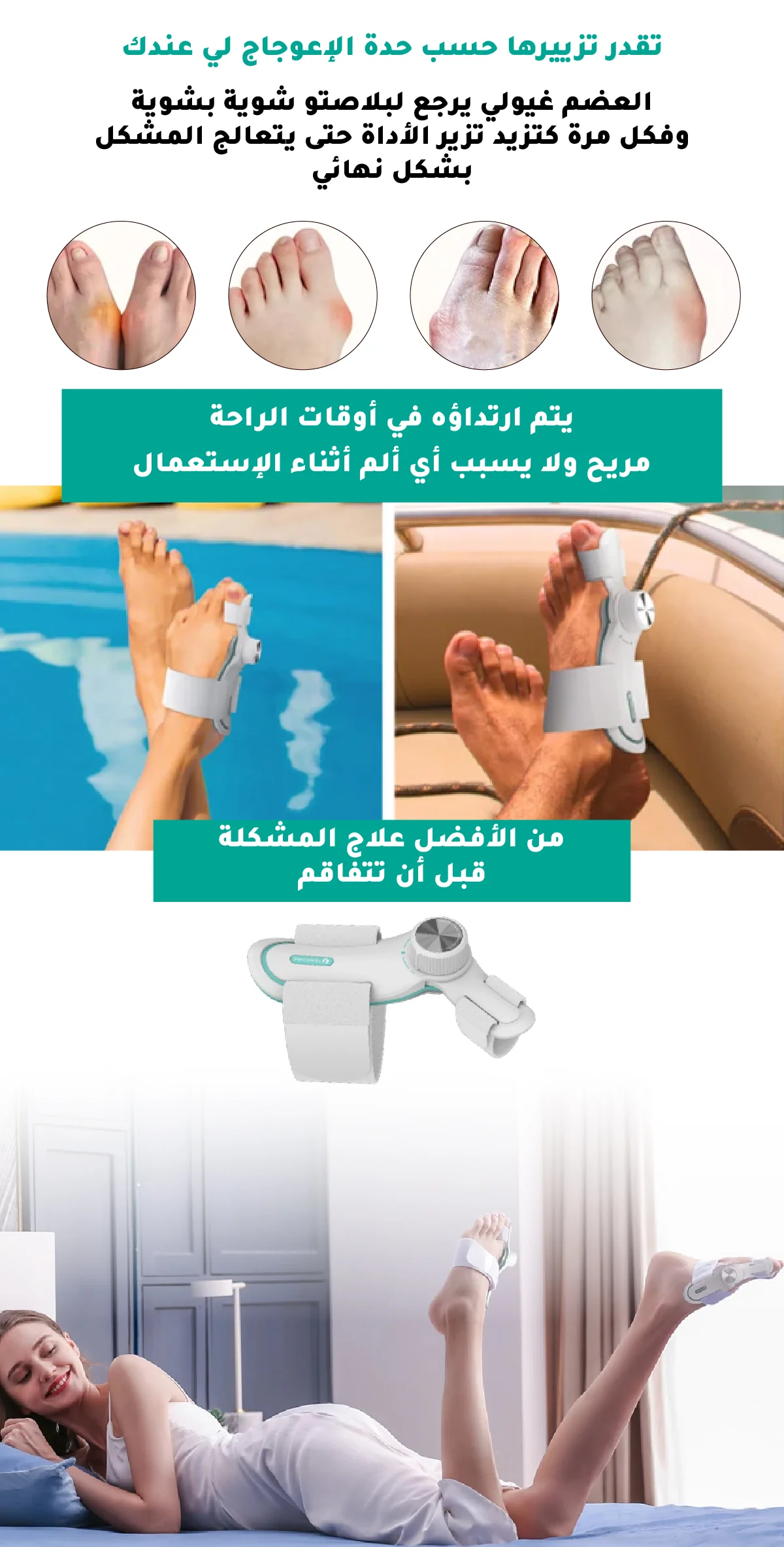 فهو يحافظ على إصبع القدم مستقيماً نحو موضعه الطبيعي لمنع المزيد من انحرافه وإبطاء تطور المرض. مصممة للاستخدام أثناء الراحة أو النوم. يطبق نظام ضغط ثلاثي النقاط لتخفيف إبهام القدم الأروح. يساعدك على ضبط إصبع القدم الكبير لمنع الأروح. مناسب للنهار والليل. مفيد في تخفيف تشوه إبهام القدم الأروح. قابل للتعديل حسب إصبع القدم الكبير. اختيار جيد لضبط إصبع القدم الكبير لعلاج أو منع الأروح. وهذا يساعدك على إرجاع القدم إلى شكلها الطبيعي. يحمي إبهام القدم الأروح عن طريق الحد من الاحتكاك المرتبط بنقص المساحة في الحذاء، ويباعد إصبع القدم الكبير من الثانية للحد من الانحراف وتجنب التداخل. يمكن ارتداؤه أثناء ارتداء